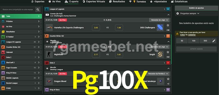 O Pg100X oferece uma grande seleção de opções de apostas em e-sports com probabilidades competitivas